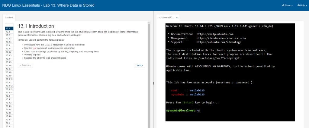 In this class we used Cisco Networking Academy to learn how to use shells to access and manipulate Linux. We also learned the purpose of Linux and what could be accomplished through using it.